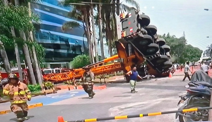 Según los primeros reportes, la maquinaria —una grúa tipo pluma utilizada para levantar equipos pesados dentro de la obra— habría colapsado debido al peso que soportaba en ese momento.
